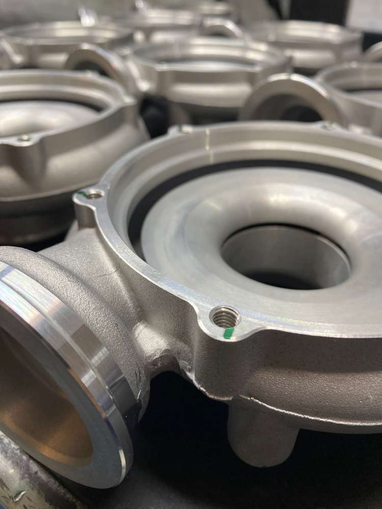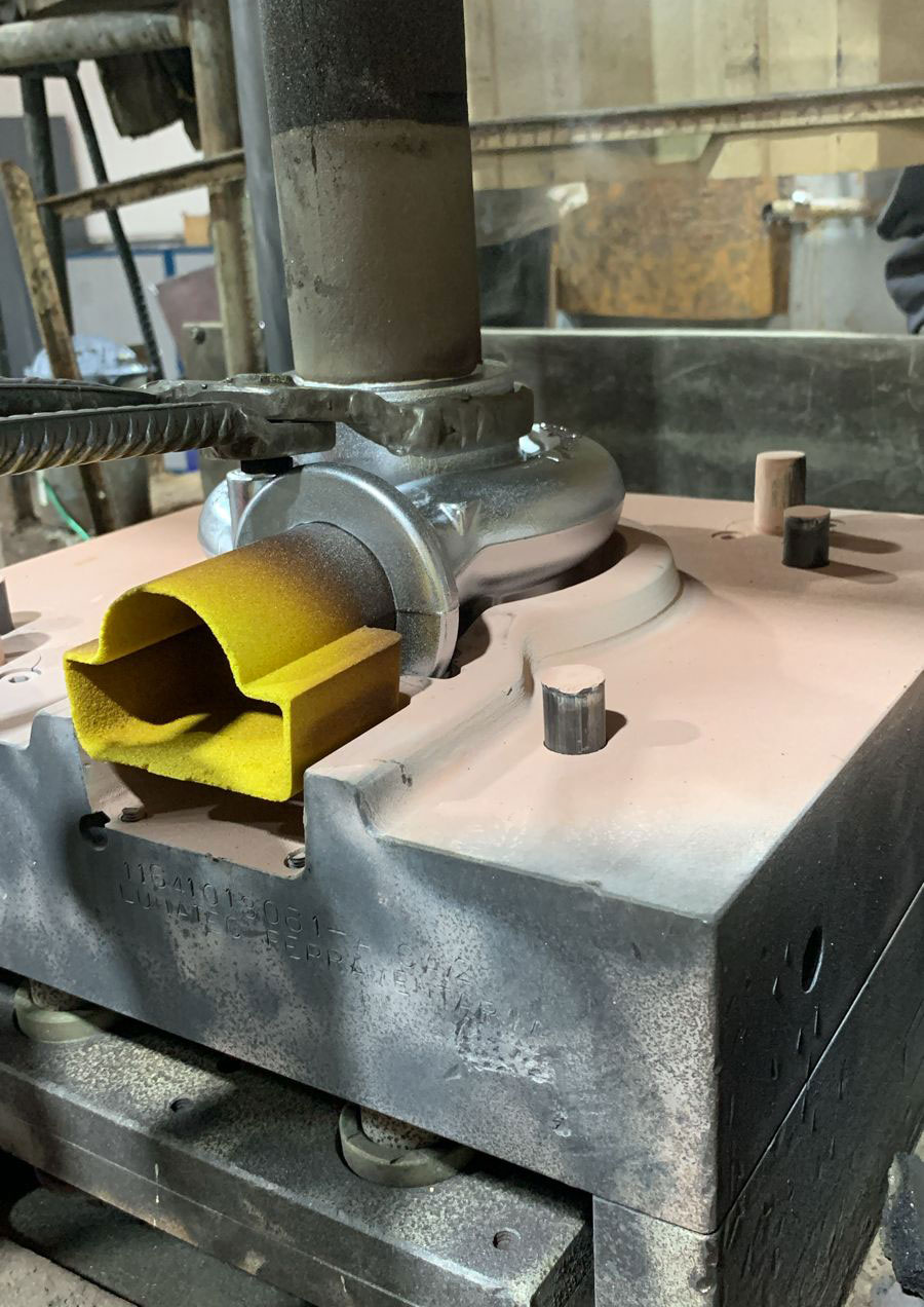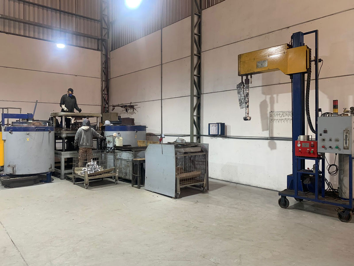 Processo de coquilha – Contando com 3 prensas hidráulicas e 6 fornos, e a produção da macharia(sejam eles em Shell ou Cold Box) produzidos internamente, produzimos peças de alta complexidade como as carcaças compressoras dos turbos.